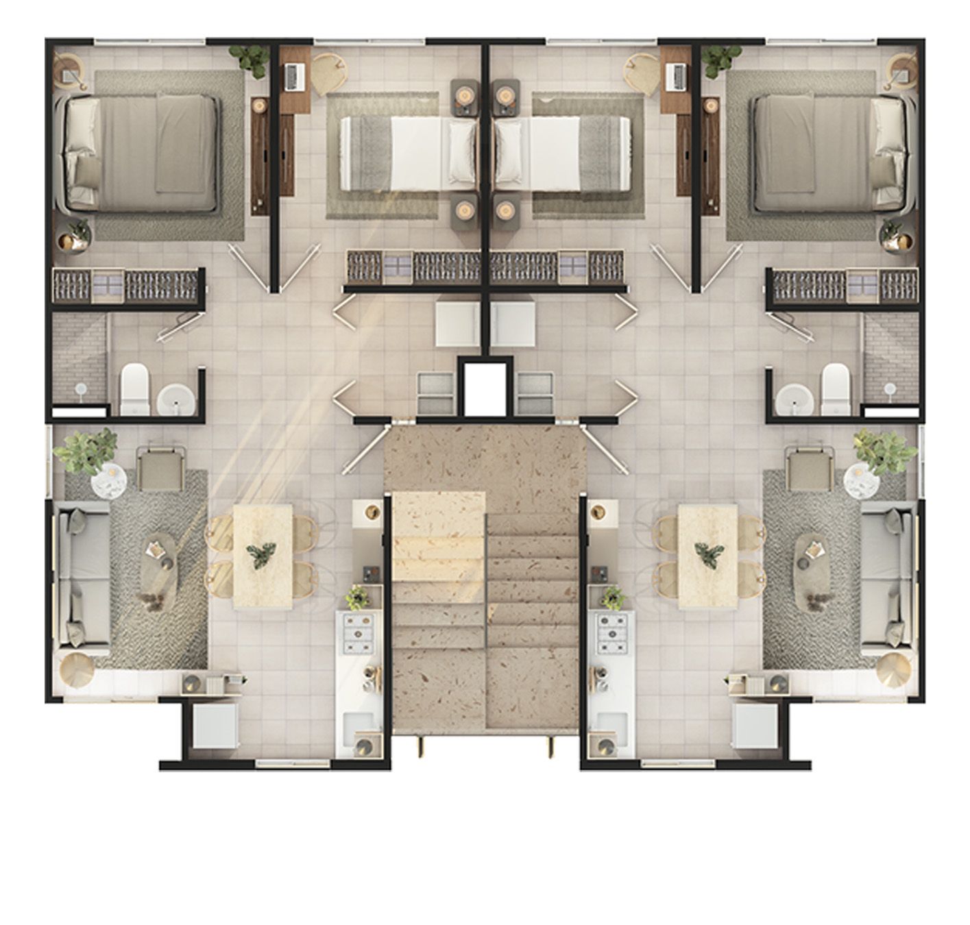 El desarrollo cuenta con 24 torres, departamentos de 2 recámaras en torres